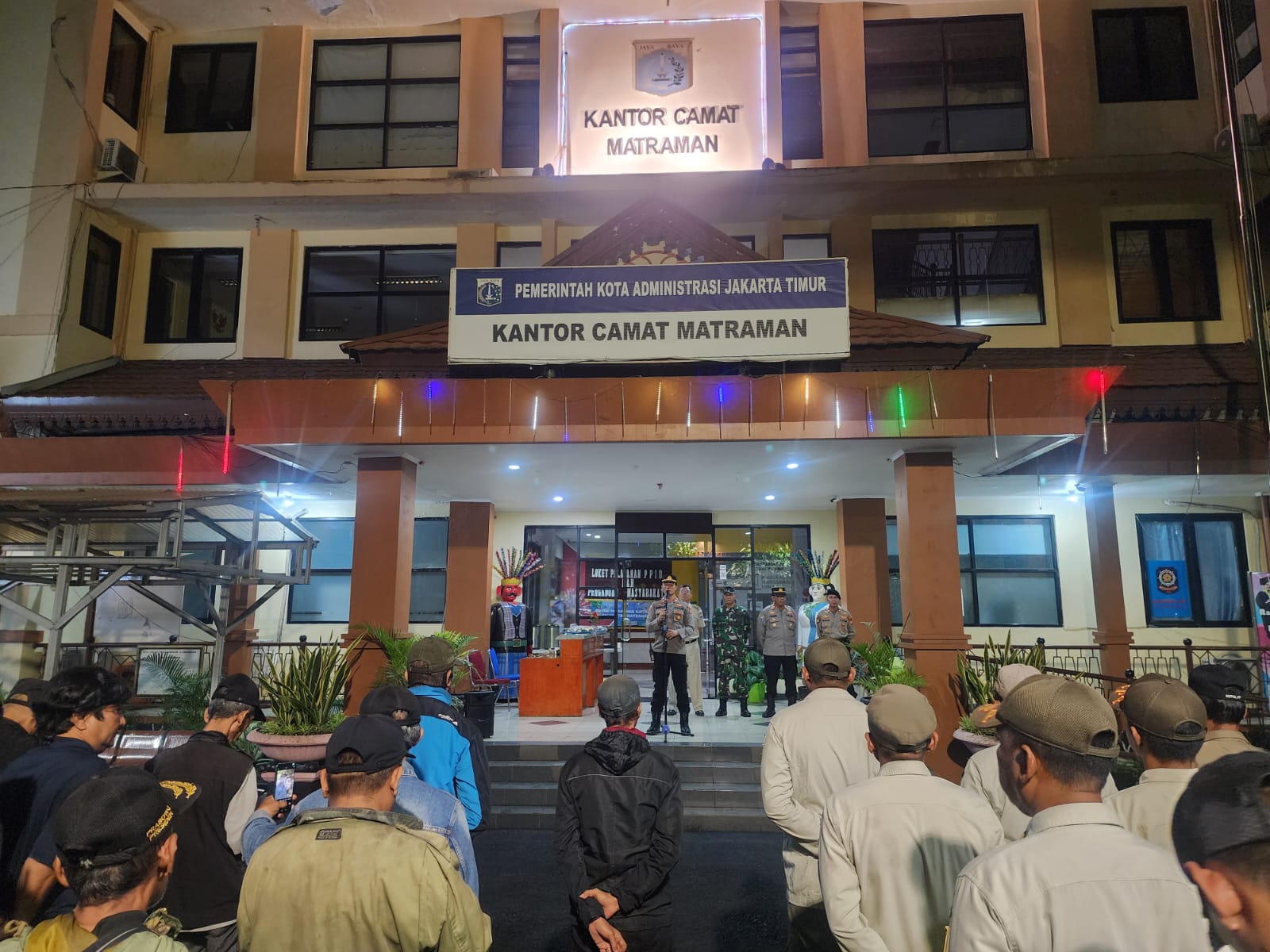 StarindoNews.com JAKARTA — Antisipasi tawuran warga diwilayah Matraman , Plh Danramil 02/Matraman Kapten Inf Sukir bersama Kapolsek, Camat Matraman dan Forkopimcam empat pilar, gelar apel cipta kondisi bertempat di Kantor Kecamatan Matraman, Minggu (18/05/25) dini hari.