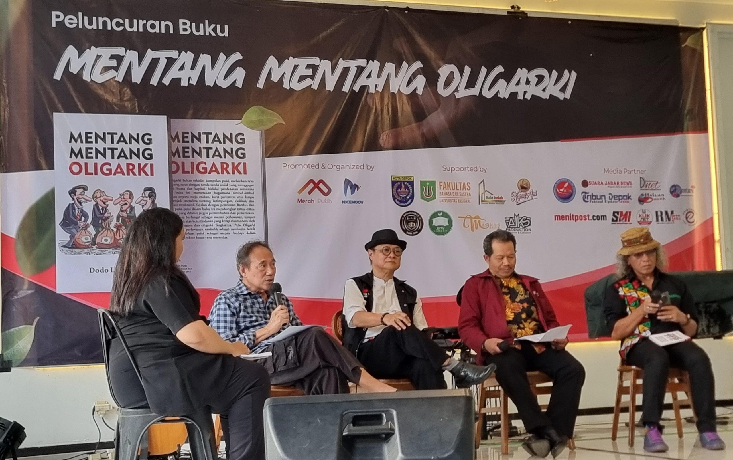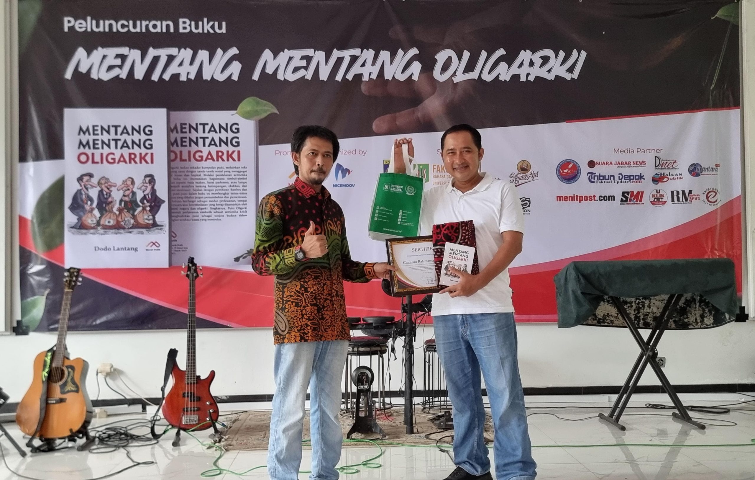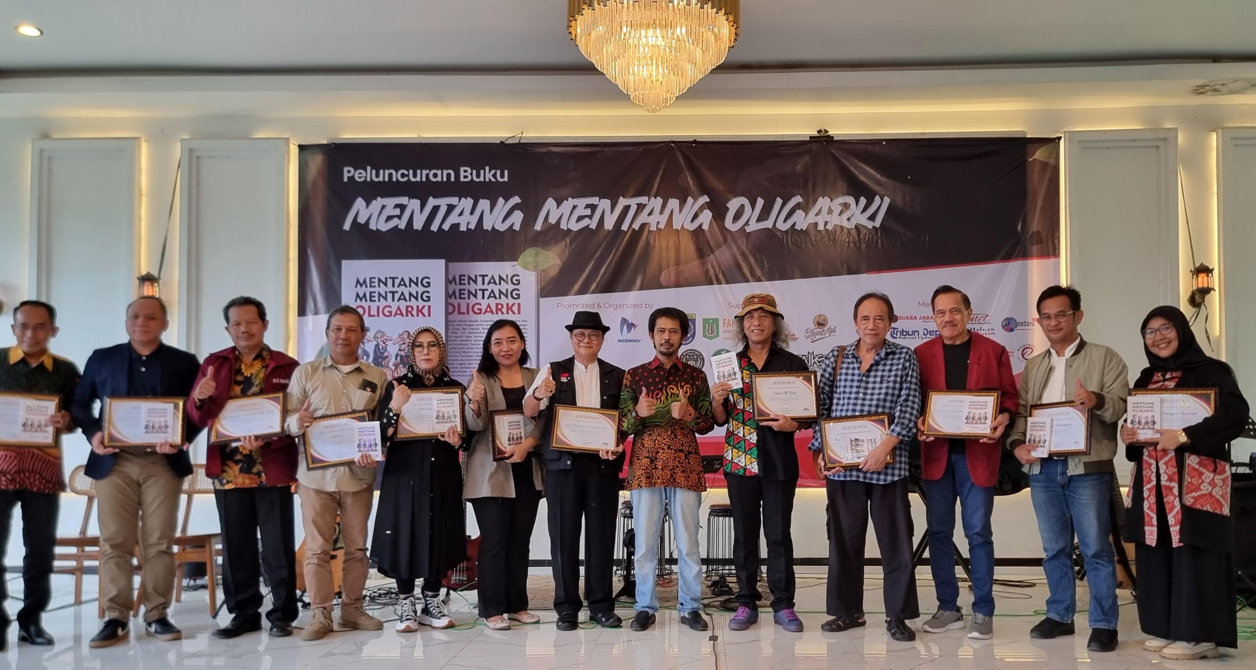 Lounching buku ” Mentang Mentang Oligarki yang penuh imajinatif ini dihadiri oleh Prof, Firdaus, Rektor Universitas Nasional Jakarta Dr. L. Amri Bermawi Putera, M.A. Plt, Dekan Fisip UNJ, Dr. Aos Y. Firdaus, Sip. M.si. Marsekal TNI (Pur) Chepy Hakim, ketua Lembaga Unas, Harry Darmawan, S.Hum.Msi, Sekretaris DPC PKB Iwan Setiawan, Fikar W. Eda (Penyair dan Wartawan Senior) Bambang Prihadi (Ketua Dewan Kesenian Jakarta)