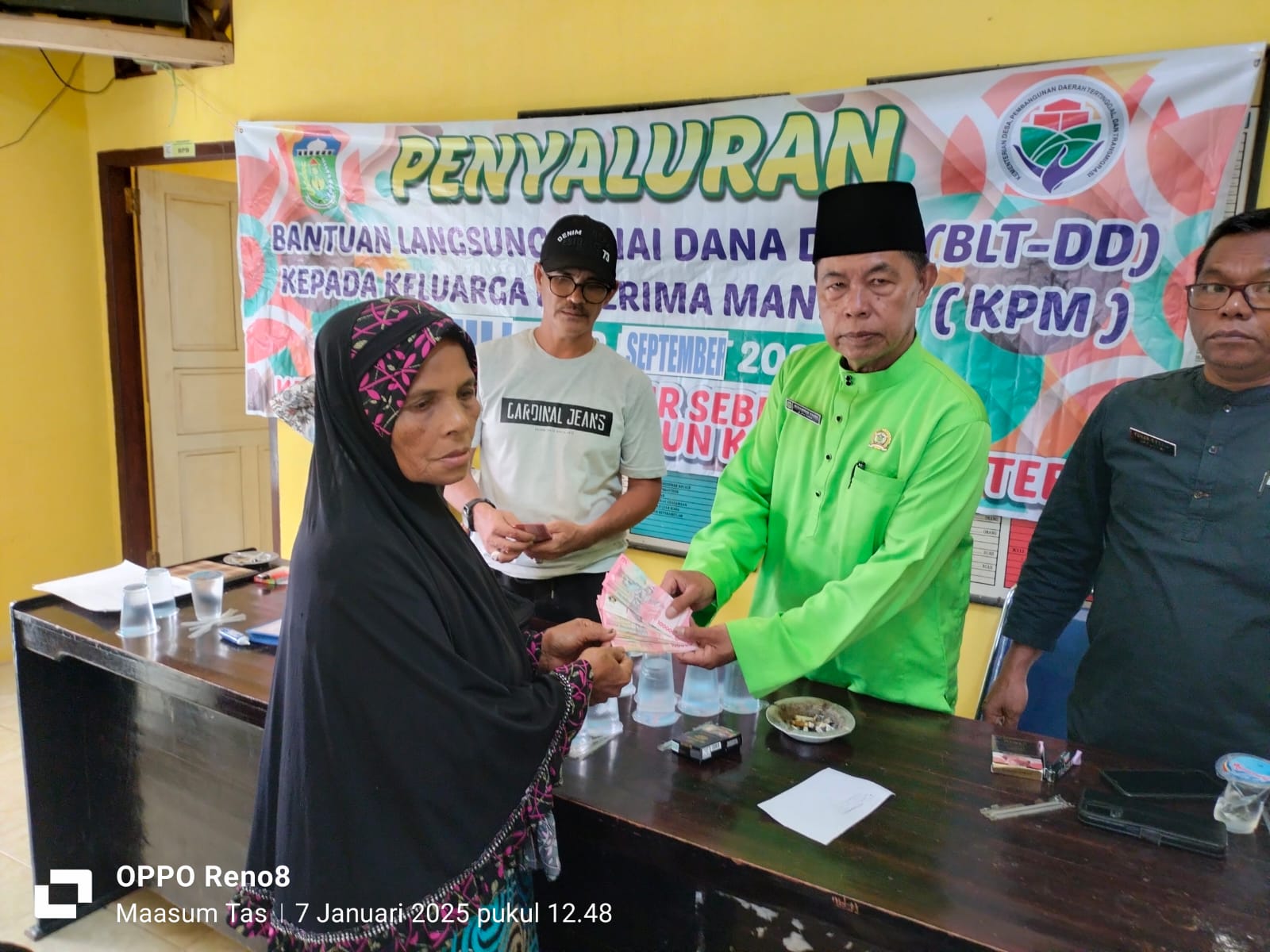 Pada hari ini selasa tanggal 07/01/2025 dengan kegiatan Penyaluran bantuan langsung tunai dana desa ( BLT DD ) tahun 2024,Bantuan Langsung Tunai Dana Desa adalah kegiatan pemberian bantuan langsung berupa dana tunai yang bersumber dari Dana Desa kepada Keluarga Penerima Manfaat (KPM) dan diputuskan melalui Musyawarah Desa sesuai dengan kriteria yang ditetapkan dalam peraturan perundang-undangan, Pemerintah Desa tanjung aur seberang melakukan kegiatan penyaluran Bantuan Langsung Tunai Dana Desa (BLT DD) Bulan Oktober/November/Desember Tahun 2024. Kegiatan ini dilaksakan di Kantor Desa tanjung aur seberang yang dimulai pukul 09.00 WIB sampai pukul 11.00 WIB. BLT DD bulan Oktober/November/Desember Tahun 2024 telah disalurkan oleh Pemerintah Desa tanjung aur seberapa kepada 20 KPM (Keluarga Penerima Manfaat), setiap KPM menerima bantuan masing masing sebesar Rp 900.000,- per tiga bulan.