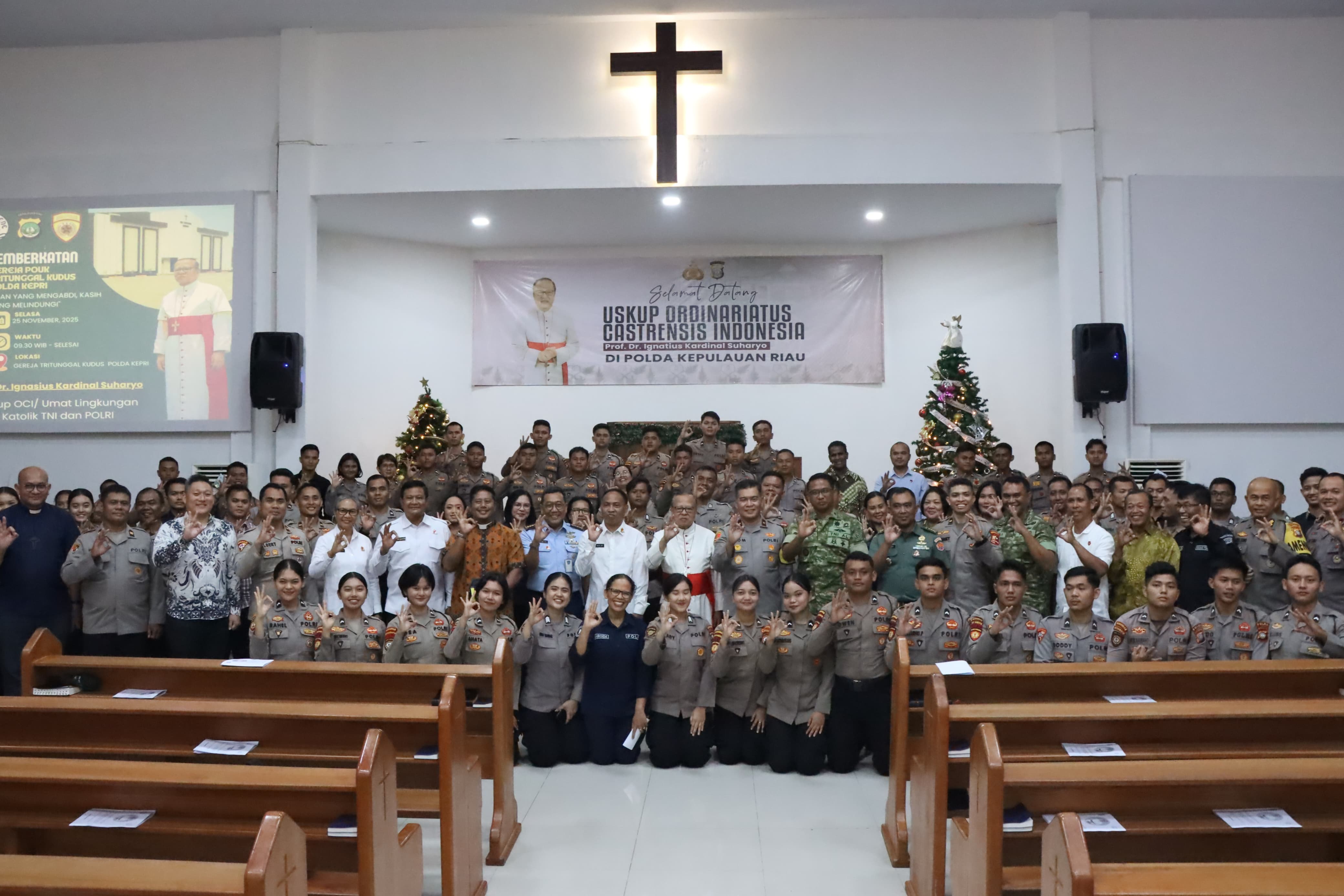 Starindonews.com Batam– Wakapolda Kepri Brigjen Pol Dr. Anom Wibowo, S.I.K., M.Si., menyambut kunjungan pastoral Bapak Prof. Dr. Ignatius Kardinal Suharyo, Uskup Ordinariat Castrensis Indonesia (OCI) / Uskup Umat Katolik di Lingkungan TNI dan Polri, yang berlangsung di Gereja Oikumene Polda Kepri pada Selasa (25/11/2025).