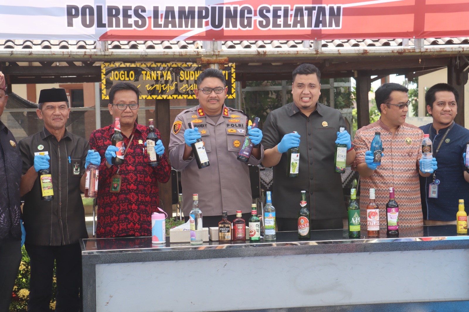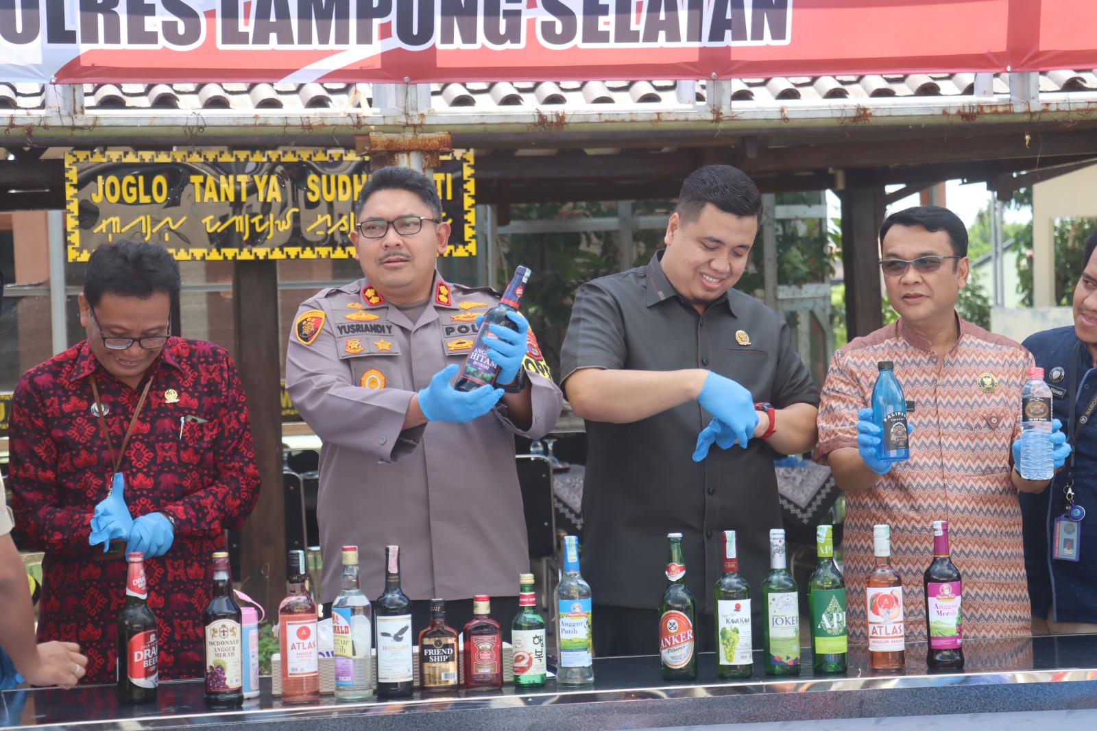 Kapolres Lampung Selatan, AKBP. Yusriandi Yusrin, dalam konferensi persnya menegaskan bahwa pemusnahan total 602 botol miras berbagai merek dan 221 liter tuak yang berhasil disita dari berbagai lokasi.