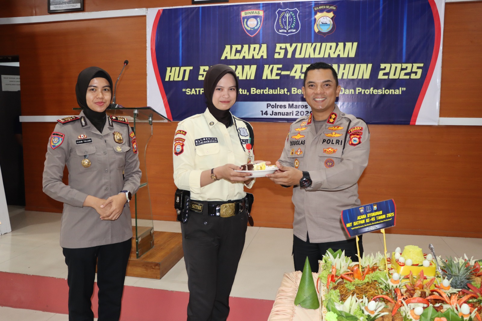 STARINDONEWS.COM, MAROS – Kepolisian Resor Maros menggelar syukuran dalam rangka memperingati Hari Ulang Tahun (HUT) Satuan Pengamanan (Satpam) ke-45 tahun 2025. Acara yang berlangsung khidmat ini digelar di Aula Mapolres Maros pada Rabu (14/1/2026).