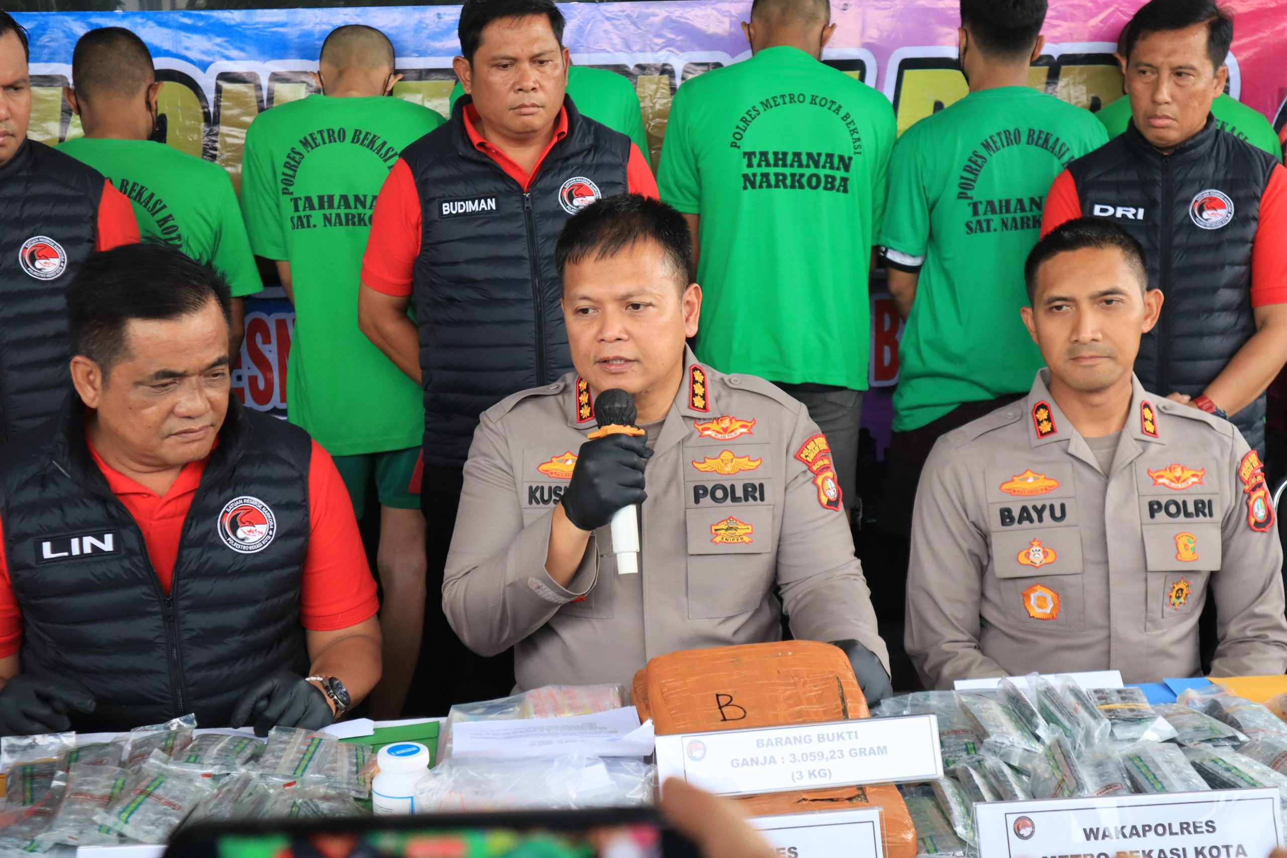 StarindoNews.com KOTA BEKASI – Polres Metro Bekasi Kota berhasil menggagalkan peredaran narkotika jenis ganja seberat 3.059,23 gram (3 kg) dalam pengungkapan kasus yang dilakukan di wilayah Depok. Dua orang tersangka ditangkap, sementara satu lainnya masih buron.