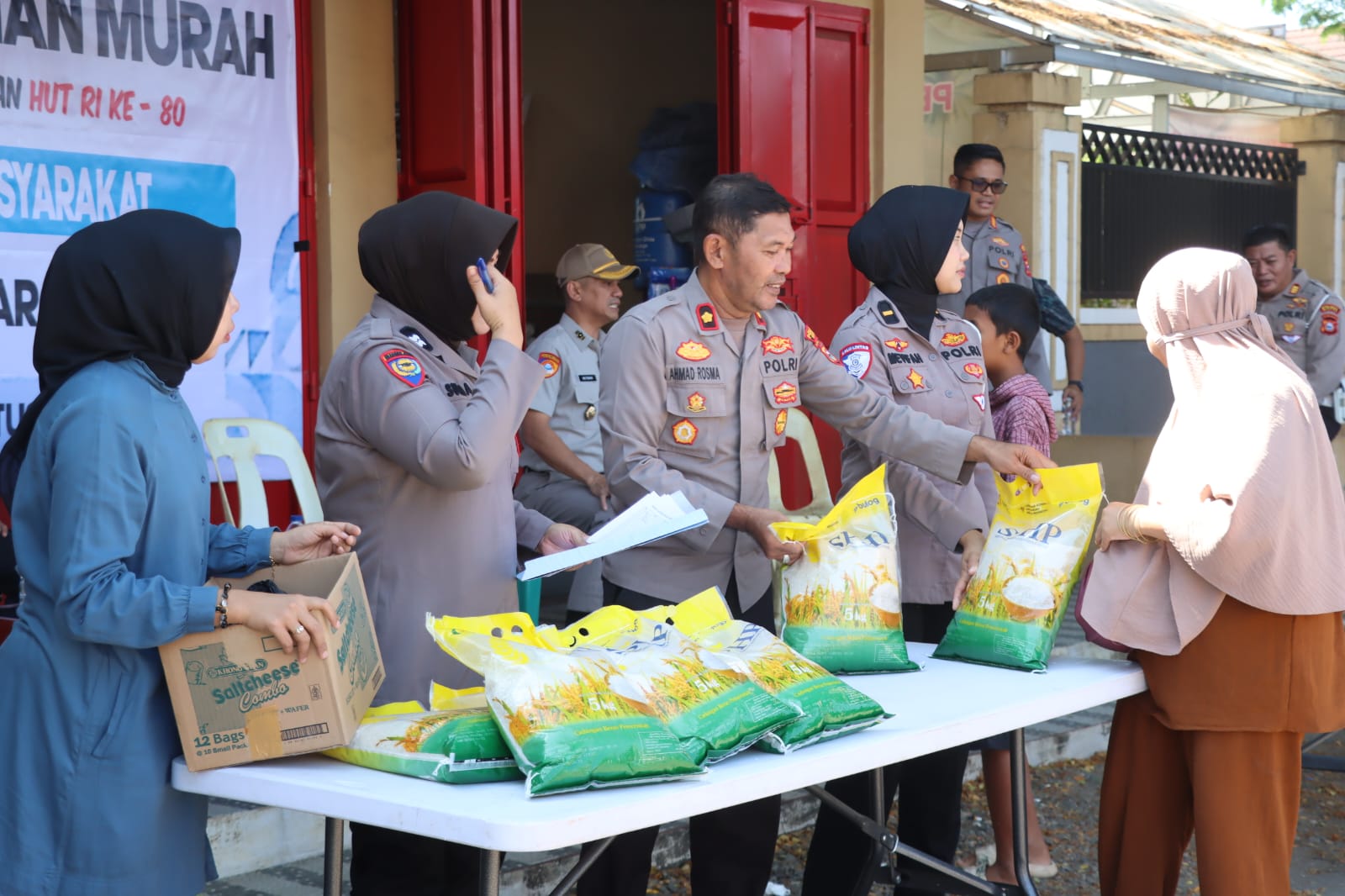 Selain membagikan beras gratis kepada penarik becak, Polres Maros juga menggelar program pangan murah dengan menjual beras kepada warga dibawah harga pasaran.