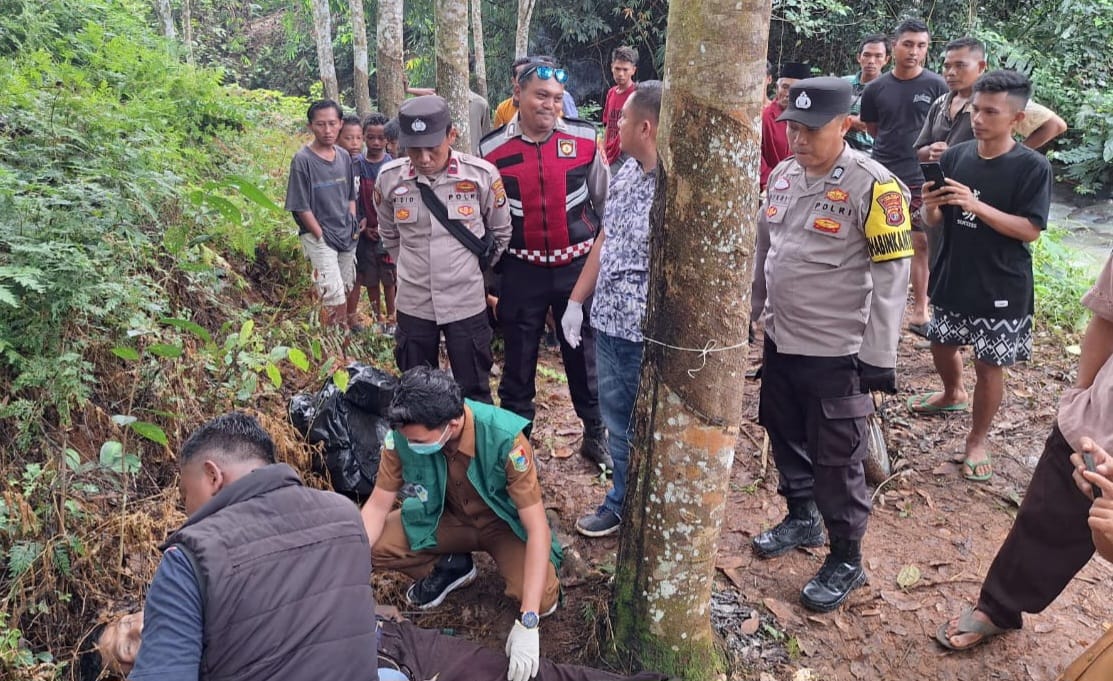 Kapolsek menjelaskan, jenazah ditemukan pertama kali oleh dua orang penyadap karet sekitar pukul 07.00 WIB saat hendak bekerja.