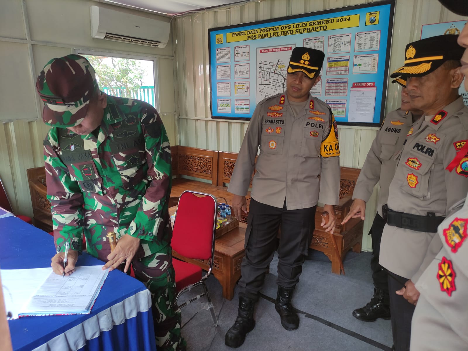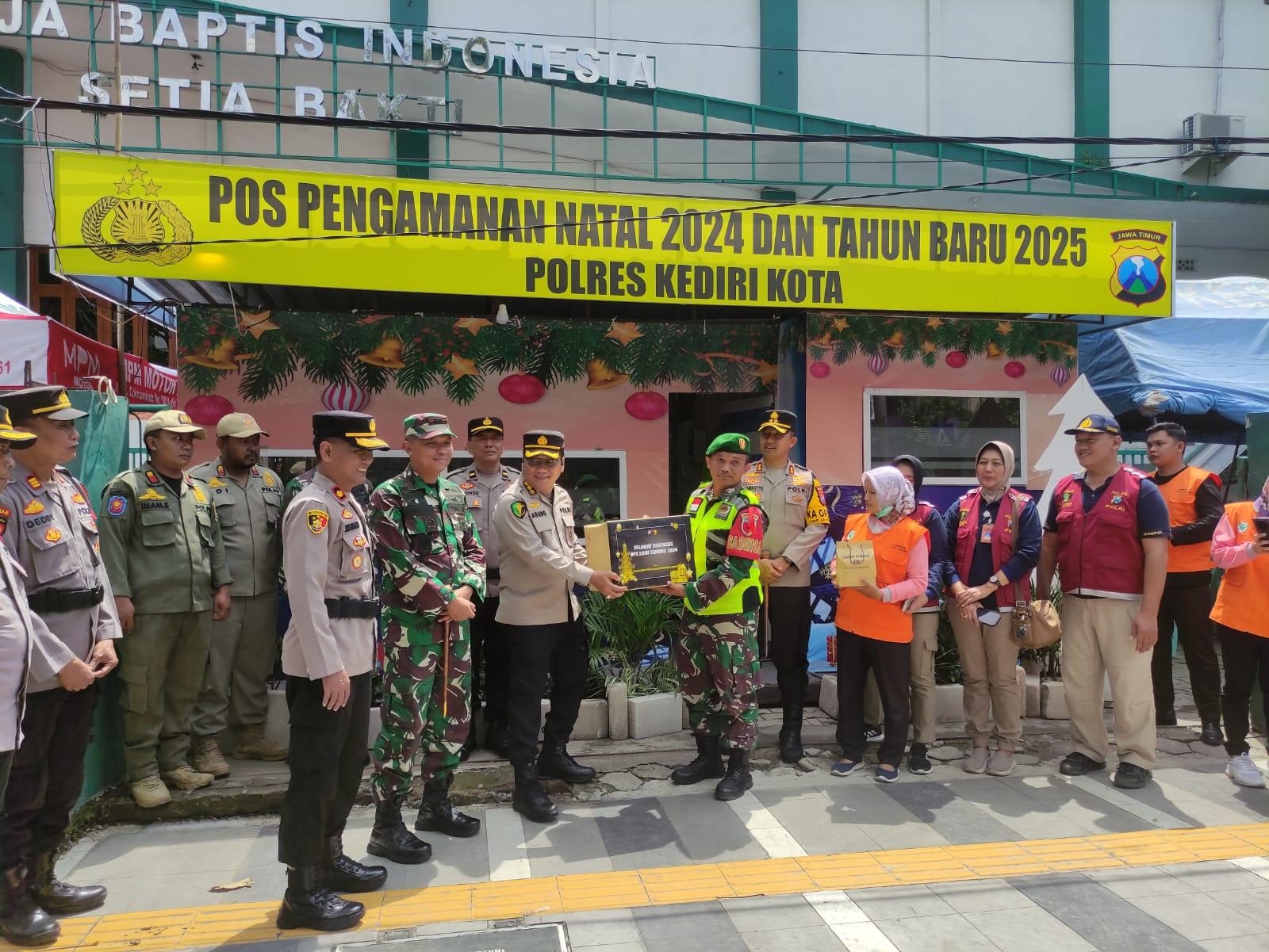 Starindonews.com | Kediri Kota – Kapolres Kediri Kota AKBP Bramastyo Priaji kunjungi Pospam I Ops Lilin Semeru 2024 di Jalan Letjen Suprapto Kelurahan Burengan Kecamatan Pesantren Kota Kediri Jawa Timur, Jumat ( 27/12/2024 ). Ikut hadir bersama rombongan dalam kunjungan ini, yakni Dandim dan Karumkit Bhayangkara Kediri.