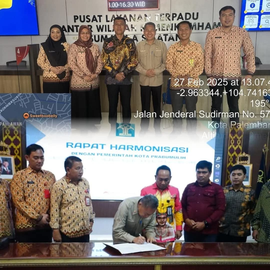 STARINDONEWS.COM | PRABUMULIH – Pada hari Kamis, 27 Februari 2025, telah dilaksanakan rapat pengharmonisasian rancangan Peraturan Walikota Prabumulih yang bertempat di Ruang Rapat Kantor Wilayah Kementerian Hukum Sumatera Selatan.