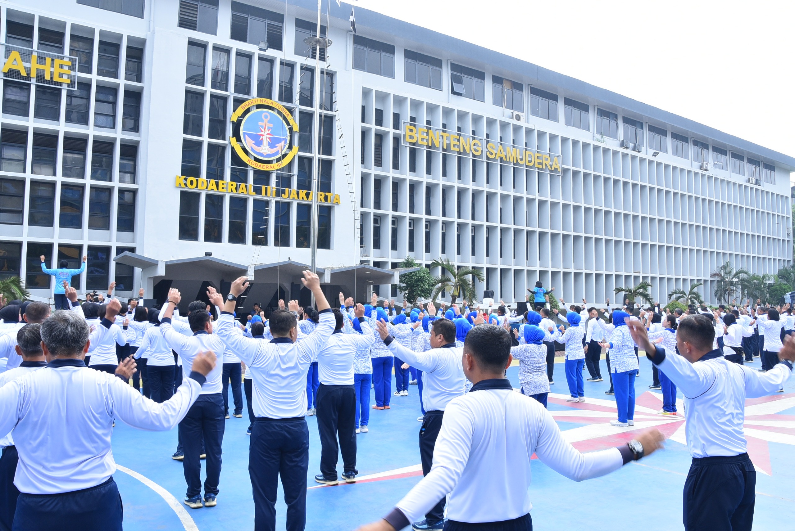 StarindoNews.com JAKARTA — Dalam rangka menyambut Hari Armada RI yang jatuh ada tanggal 5 Desember 2025, Prajurit Kodaeral III bersama Prajurit Koarmada RI dan Koarmada I menggelar olahraga bersama.