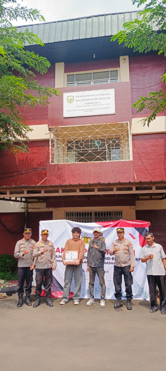 StarindoNews.com KOTA BEKASI – Dalam rangka menyambut bulan suci Ramadhan 1446H, Polsek Pondok Gede berkolaborasi dengan Badan Eksekutif Mahasiswa (BEM) Universitas Krisnadwipayana (Unkris) menyalurkan bantuan sosial. Sebanyak 20 paket baksos Polri Presisi diserahkan secara simbolis oleh Kapolsek Pondok Gede, Kompol Bambang Sugiharto, S.H., M.H., kepada perwakilan BEM Unkris di sekretariat mereka, Kamis (27/2/2025).