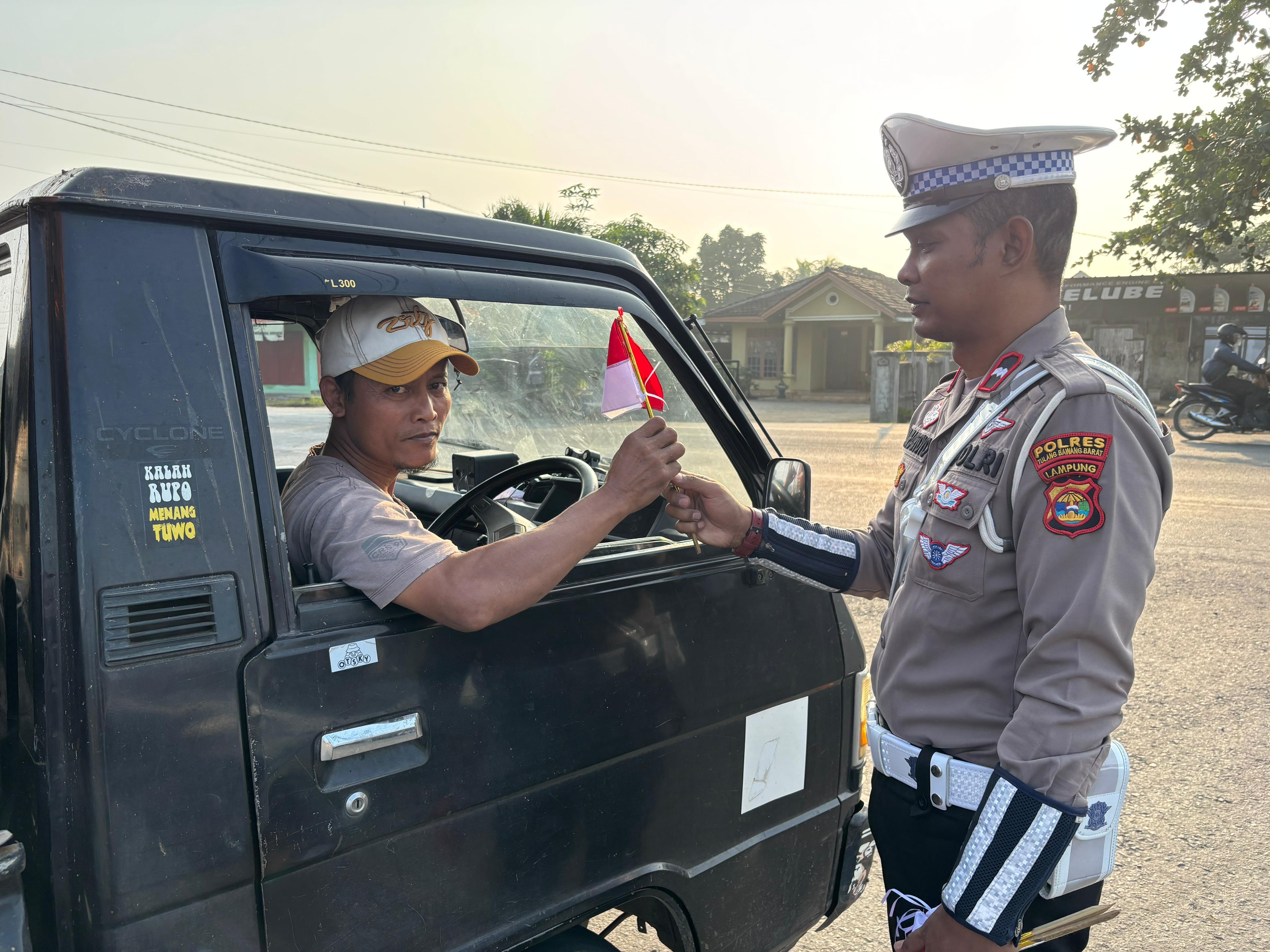 Kapolres Tulang Bawang Barat AKBP Sendi Antoni.S.I.K, M.I.K melalui Kasat Lantas Akp Fony Salimubun .S.H.,M.H, menjelaskan, pembagian bendera ini bertujuan untuk menumbuhkan rasa nasionalisme dan semangat patriotisme di kalangan masyarakat.