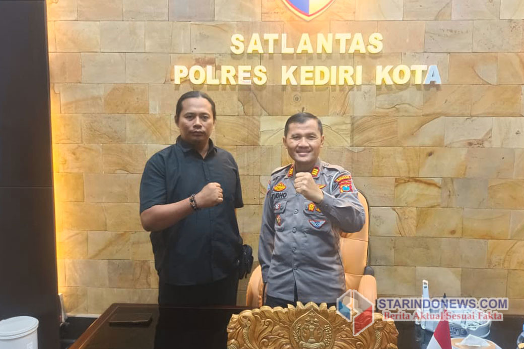 Foto dokumentasi ketika Jurnalis Media Online ” STARINDONEWS.COM ” bersilaturahmi ke Kasatlantas Polres Kediri Kota AKP Tutud Yudho Prastyawan di Mako Satlantas Polres Kediri Kota, Jalan Brawijaya, pada Kamis 11 Desember 2025 sore lalu. Sosok AKP Tutud Yudho Prastyawan dikenal sebagai sosok perwira yang terbuka terhadap masukan, responsif terhadap dinamika sosial, serta aktif membangun sinergi dengan berbagai elemen, termasuk dengan insan pers.