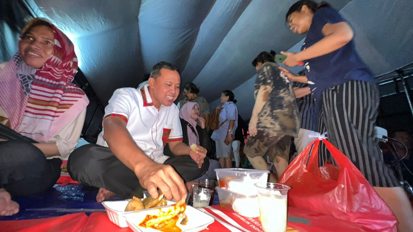Suasana di pengungsian terasa hangat meski di tengah keterbatasan. Anak-anak berlarian di antara tenda, sementara ibu-ibu sibuk membagikan makanan. Walikota dengan sigap menyapa satu per satu, menanyakan kondisi mereka, memastikan kebutuhan dasar tersedia. Ia juga berbincang dengan para relawan dan tenaga kesehatan yang tanpa lelah bekerja untuk membantu para korban.