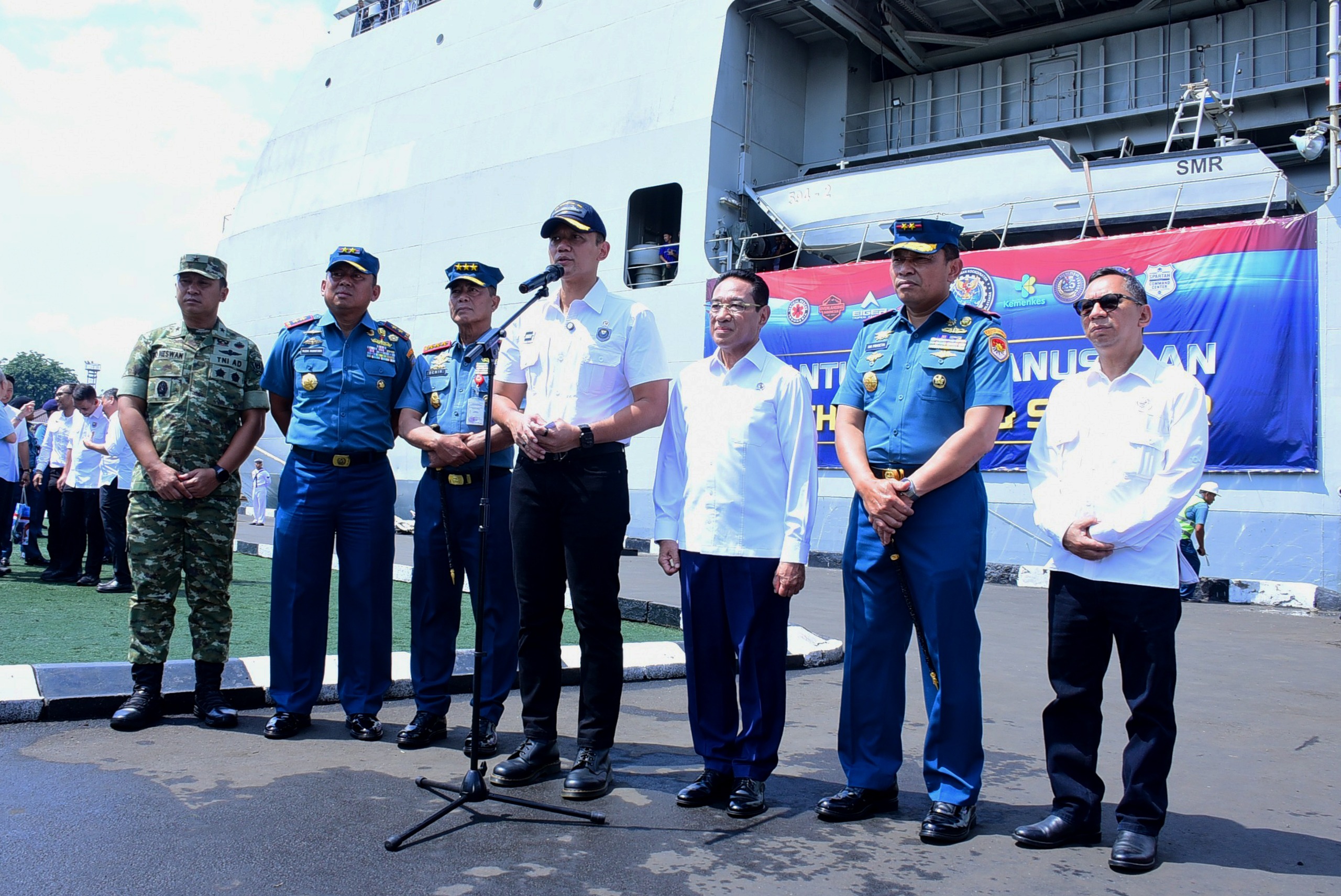 Komandan Komando Daerah TNI Angkatan Laut (Dankodaeral) III, Laksamana Muda TNI Uki Prasetia, S.T., M.M. mendampingi ‎Menteri Koordinator Bidang Infrastruktur dan Pembangunan Kewilayahan (Menko IPK), Agus Harimurti Yudhoyono bersama Pangkoarmada RI, Laksamana Madya TNI Dr. Denih Hendrata, S.E., M.M., CHRMP. melepas keberangkatan bantuan logistik kemanusiaan bagi masyarakat, yang terdampak banjir bandang dan longsor dari Dermaga Kolinlamil, Jakarta Utara, Senin (22/12).