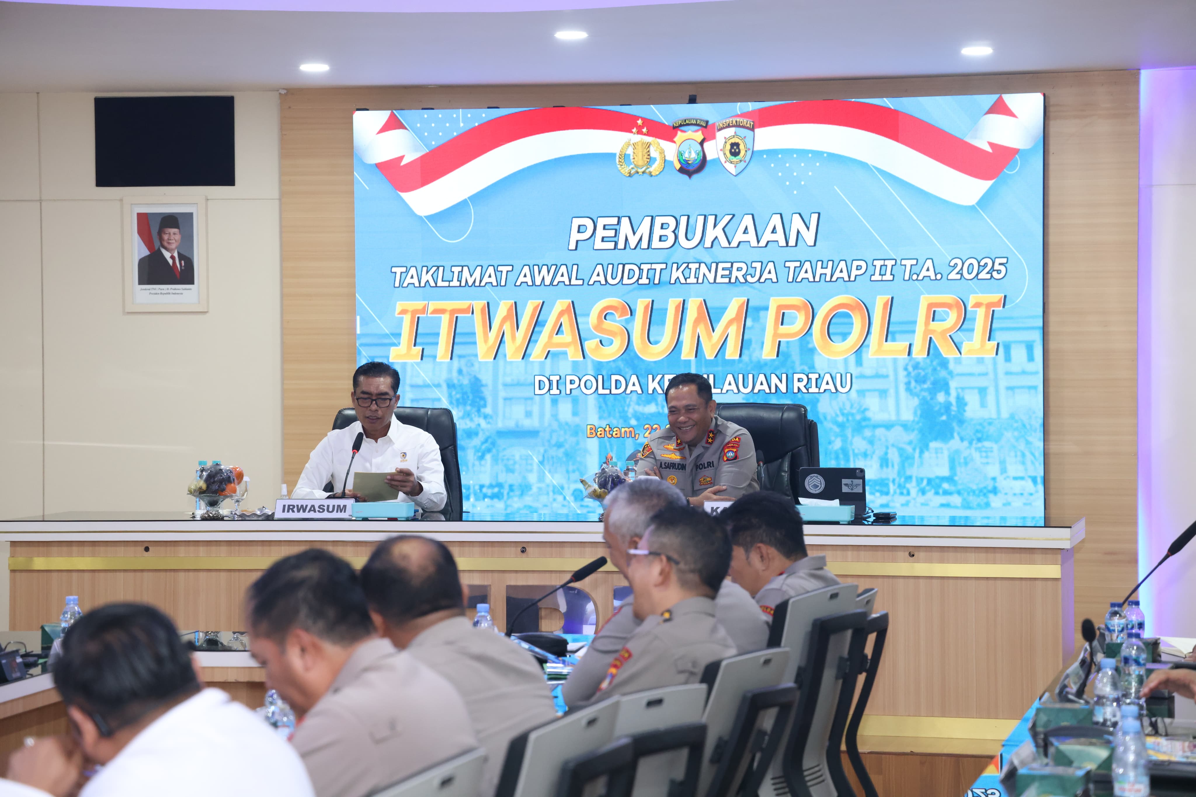 Kegiatan dipimpin langsung oleh Irwasum Polri Komjen Pol. Drs. Wahyu Widada, M.Phil., dan dihadiri Kapolda Kepri Irjen. Pol. Asep Safrudin, S.I.K., M.H., serta Karorenmin Itwasum Polri Brigjen Pol. Ucu Kuspriyadi, S.I.K., M.H., M.Si., Auditor Kepolisian Utama Tk II Brigjen Pol. Ihsan Amin, S.I.K., M.H., Wakapolda Kepri, Irwasda Polda Kepri, para Pejabat Utama Polda Kepri, Ka SPN Polda Kepri, serta para Kapolres/Ta jajaran.