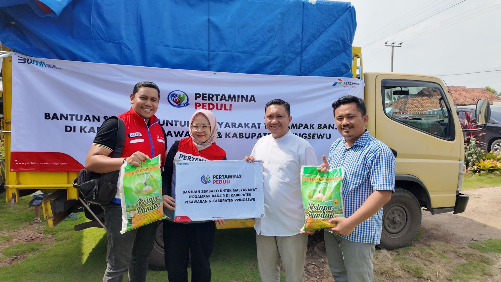 StarindoNews.com LAMPUNG — Sebagai bentuk kepedulian terhadap masyarakat terdampak banjir, Pertamina Patra Niaga Regional Sumbagsel menyalurkan 1.000 paket sembako di Kabupaten Pesawaran dan Kabupaten Pringsewu, Lampung, pada Jumat (31/01). Bantuan ini berisi bahan pokok seperti beras, gula, dan minyak sayur, yang diharapkan dapat membantu memenuhi kebutuhan dasar warga yang terdampak bencana.