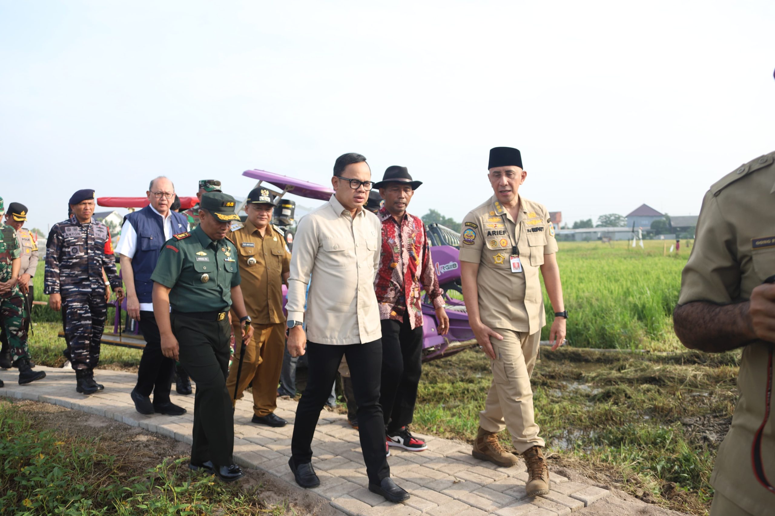 StarindoNews.com BANGKALAN — Wakil Menteri Dalam Negeri (Wamendagri) Bima Arya Sugiarto meninjau pelaksanaan panen raya di Kelurahan Tunjung, Kabupaten Bangkalan, Jawa Timur, Selasa (7/1/2025).