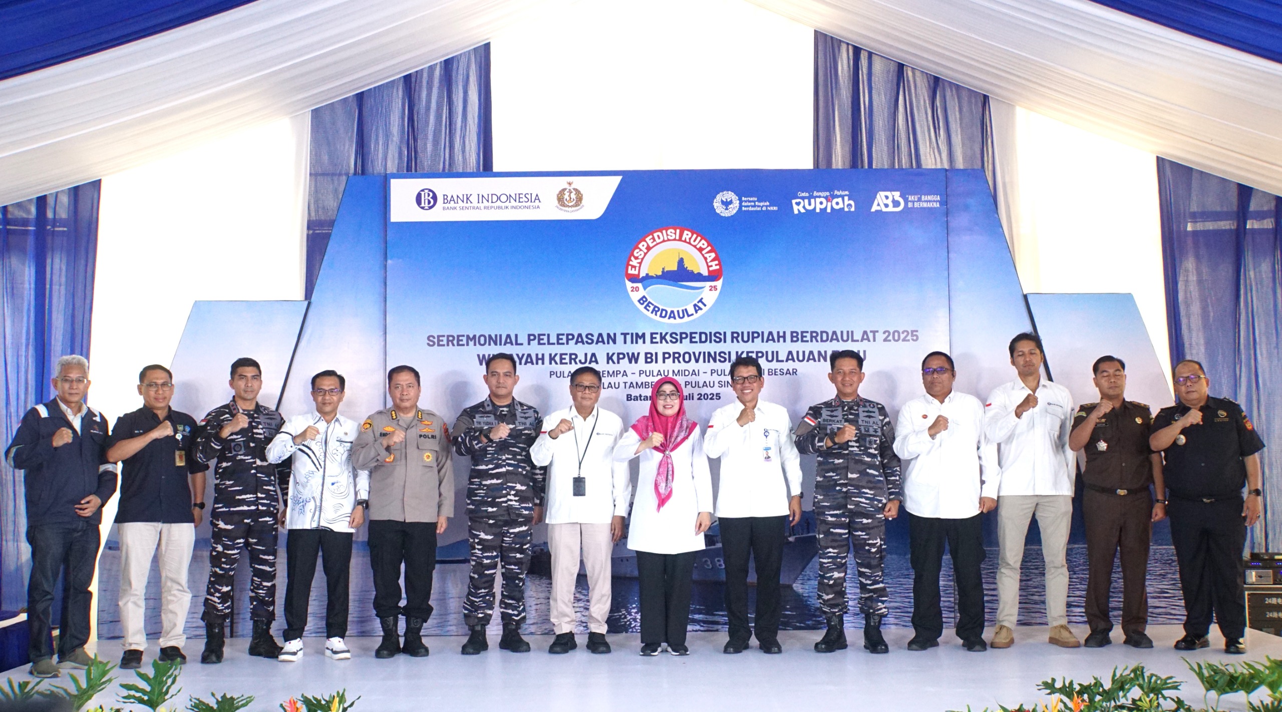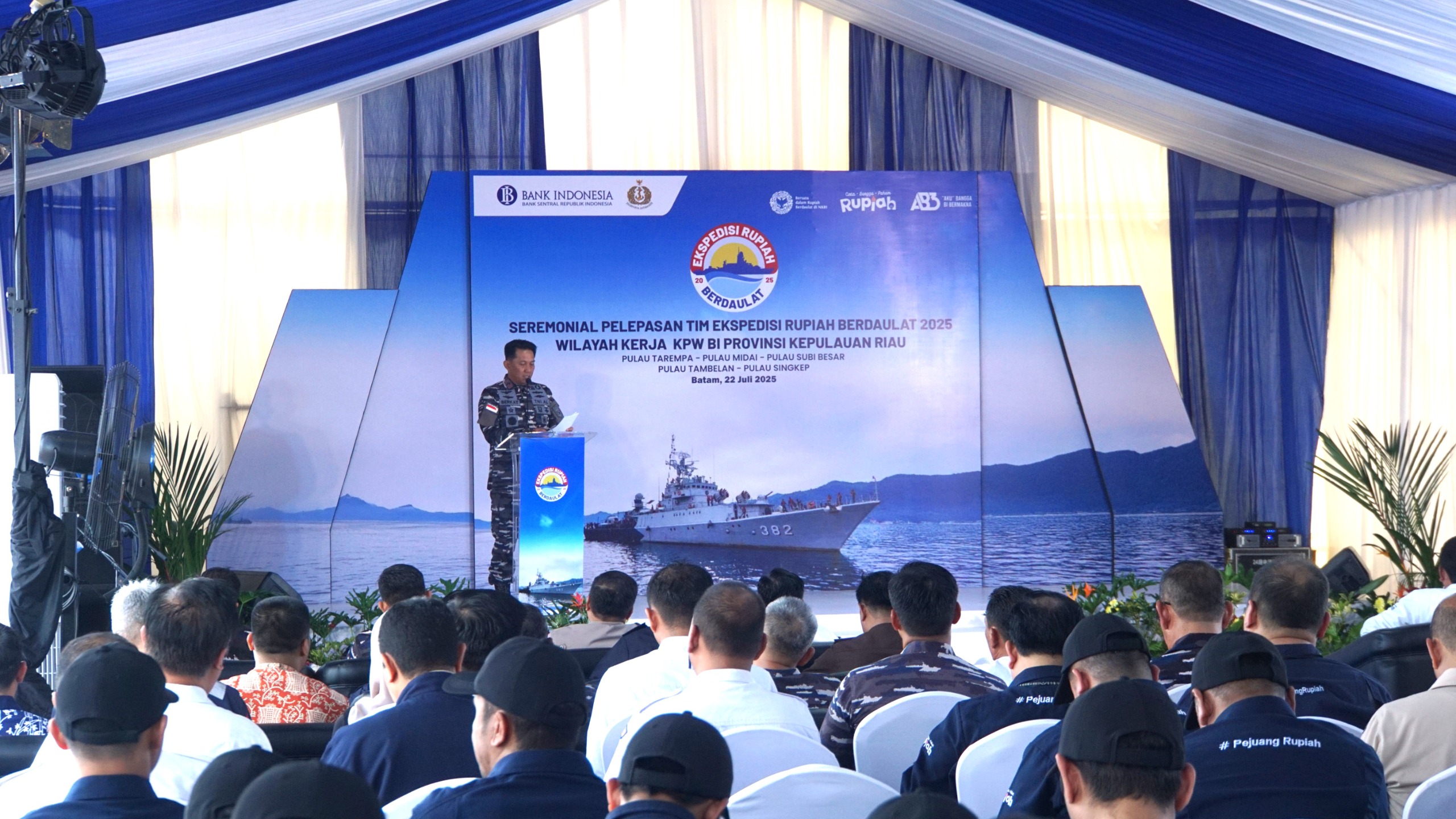 starindonews.comBatam,  Ekspedisi Rupiah Berdaulat menuju ke Pulau 3T Indonesia menggunakan Kapal Perang Republik Indonesia (KRI) Hasan Basri-382 secara resmi dilepas oleh Danlantamal IV Batam Laksamana Pertama TNI Berkat Widjanarko, S.E., M.Tr. Opsla, di Pelabuhan Bintang 99, Batu Ampar, Selasa (22/07/25).