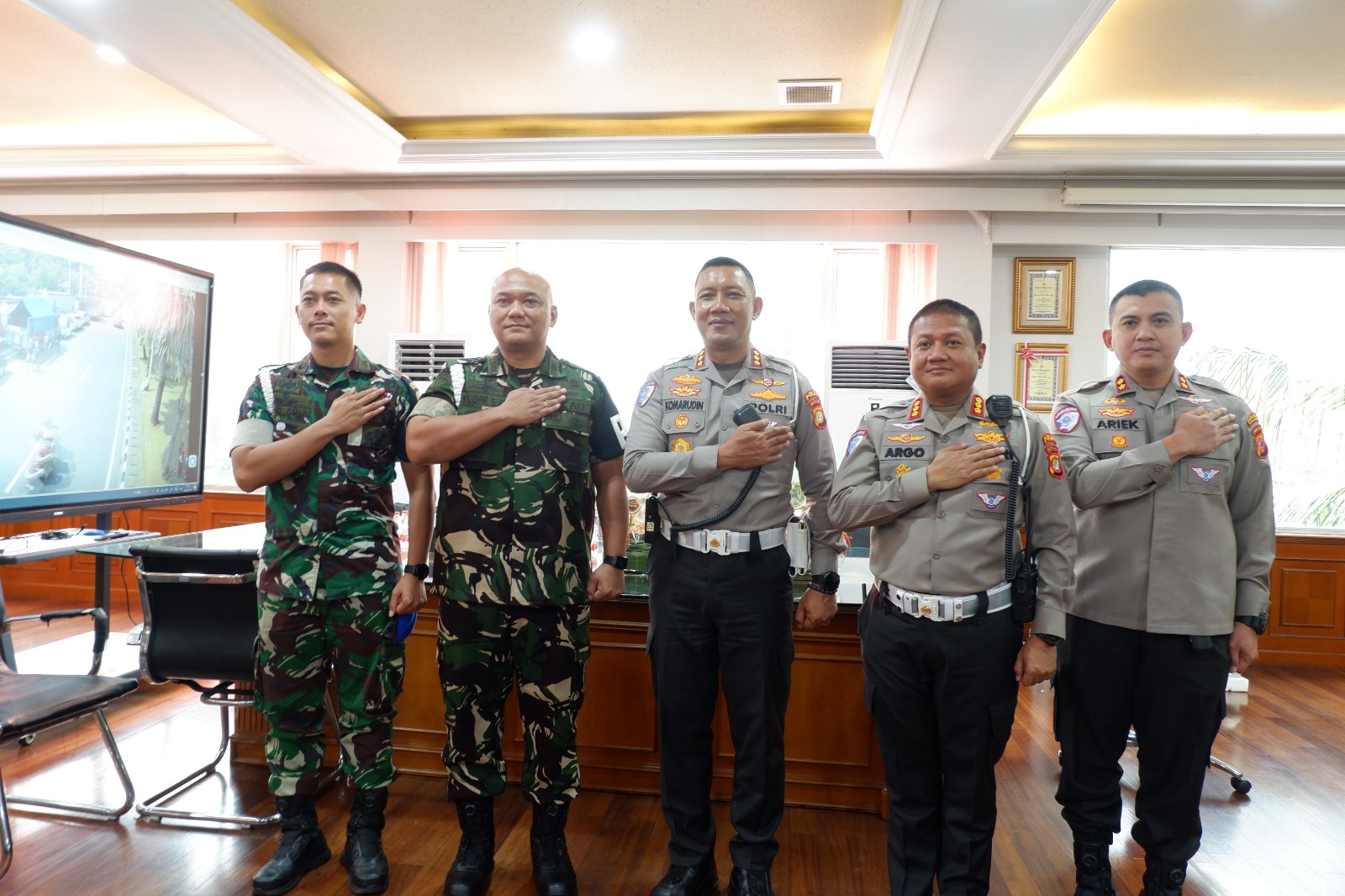 Didamping Kasigakkum Pomdam Jaya Kapten Cpm Hugo Adi Nugroho, S.S.T.Han., S.I.P., M.H., beserta Paur Anev Letda Cpm Arfan Nasution disambut langsung Dirlantas Polda Metro Jaya Kombes Pol. Komarudin, S.I.K., M.M.