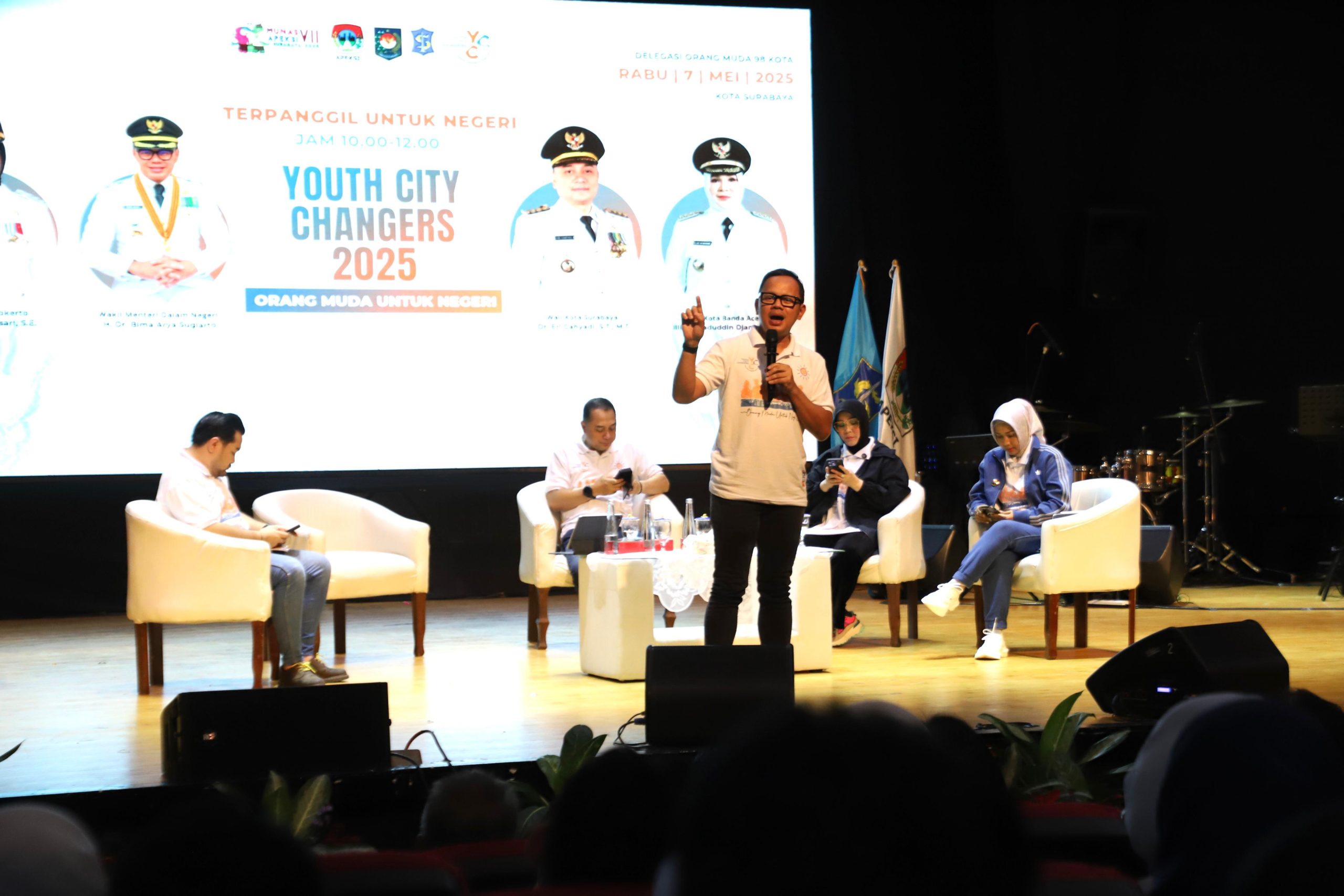 “Jadi masalah sampah, masalah lingkungan itu juga bisa dilakukan oleh kita semua,” ujarnya saat menjadi narasumber pada acara Youth City Changers Asosiasi Pemerintah Kota Seluruh Indonesia (APEKSI) Bincang Muda I bertema “Terpanggil untuk Negeri” di Alun-Alun Kota Surabaya, Jawa Timur (Jatim), Rabu (7/5/2025).